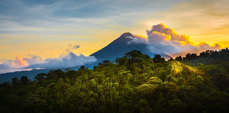 Selvas vigiladas por colosos humeantes, cascadas naturales, bosques nubosos y playas salvajes dan la bienvenida al viajero en el paraíso verde de Centroamérica.